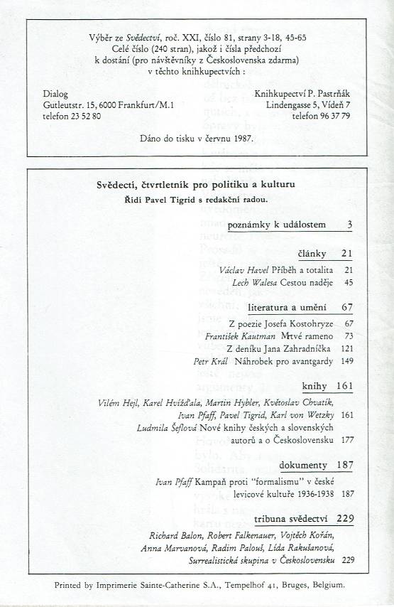 Svědectví, čtvrtletník pro politiku a kulturu. Řídí Pavel Tigrid s redakční radou.